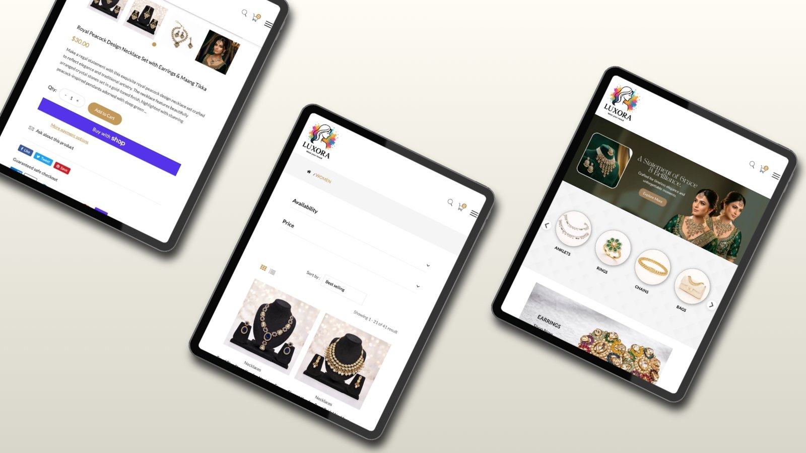 The main technical issue that we had to solve was how to structure a large and highly diverse inventory of products into a user experience that is as frictionless as possible. Luxora Collection has a wide range of products such as complex Jhumkas and fine anti-tarnish rings, kadas, and hair accessories among men and children. We had to come up with a sophisticated, multi-level navigation platform, one that would enable the shopper to sift through these different collections without the interface becoming crowded. Also, the presentation of the high quality and fineness of high-end jewelry demanded high spec image quality, and that is why we had to establish strict image optimization policies, which would enable us to achieve superfast page loading times, particularly among mobile customers.