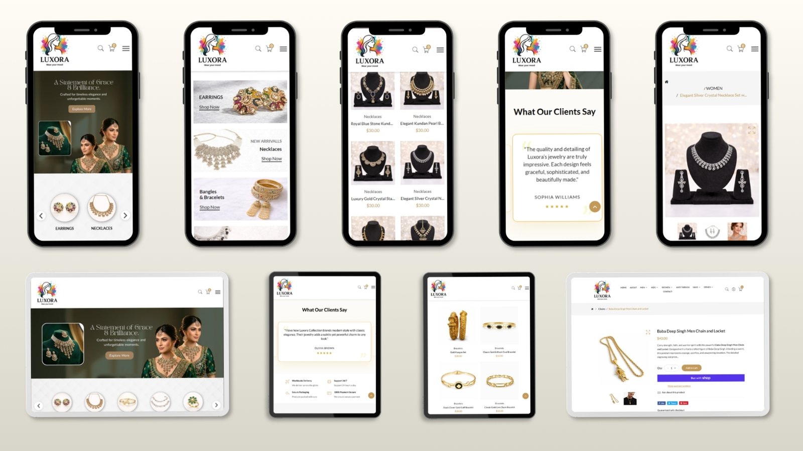 The project was completed successfully in a shortened 20-day sprint to create a classy and high-converting online store to create Luxora Collection. During these three weeks, our team was working on designing an all-inclusive e-commerce catalog that can support various different types of jewelry- statement necklaces, everyday anti-tarnish jewelry, etc. We quickly implemented smooth shopping cart, system, installed safe payment gateways around the world and created a perfectly mobile-responsive platform. This nimble response enabled the brand to start expanding its global delivery services at once without sacrificing on the luxury style.